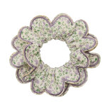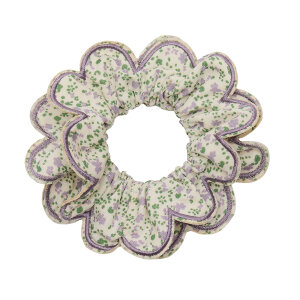 Ova gumica u pakiranju od 1 komada promjera približno 12 cm izrađena je od elastične tkanine koja je dovoljno rastezljiva, a opet čvrsta za svakodnevno nošenje. Scrunchie se sastoji od dva sloja preslatkog tiskanog cvjetnog uzorka s ljubičastim valovitim rubovima, pružajući savršen spoj nježnog i stylish detalja za male modne trendseterice. Idealna je za frizure tijekom igre, škole ili posebnih prilika.