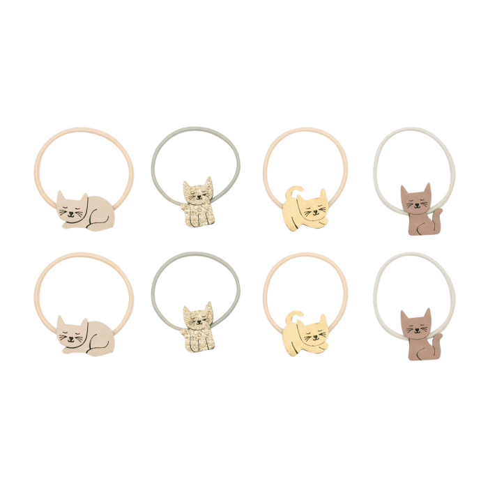 U pakiranju dolazi 8 gumica veličine 5 cm u nježnim neutralnim tonovima, savitljivih i čvrstih za svakodnevnu upotrebu. Gumice su ukrašene razigranim macama, izrađenih od kombinacije meke imitacije kože i glitter tkanina. Savršene su za male ljubiteljice mačaka koje žele šarmantne i veselo-razigrane frizure – idealne za igre, posebne prilike ili svaki dan kada žele zasjati.