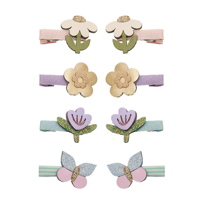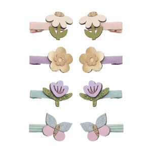 Ovaj set sadrži 8 mini špangica veličine 3 cm, obloženih trakom za jednostavno i sigurno nošenje, idealnih za nježnu dječju kosicu i razigrane frizure. Špangice su ukrašene cvjetićima i malim leptirićima, pažljivo izrađenima od kombinacije mekanog materijala, glittera i metalik tkanina, pružajući suptilan, šarmantan i razigran proljetni detalj koji će oduševiti svaku malu ljubiteljicu cvijeća i bajkovitih dodataka za kosu.