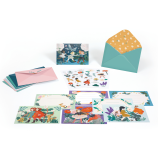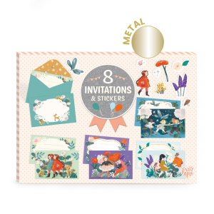 Ovaj čaroban set s motivom prijatelja iz vrta uključuje 8 ilustriranih pozivnica, 8 šarenih omotnica i 2 lista naljepnica za potpuno personalizirane poruke. Kombinacija metalik efekta i mat otiska daje svakom dizajnu elegantan i originalan izgled, dok visokokvalitetni FSC® papir osigurava prekrasan završni dojam.