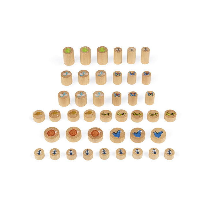 Igra razvija koncentraciju, strateško razmišljanje i finu motoriku, a uključuje 20 kartonskih diskova, 57 drvenih figura i 3 kockice. Izrađena je od FSC® certificiranih i kontroliranih materijala, što je čini sigurnim i održivim izborom za male igrače.