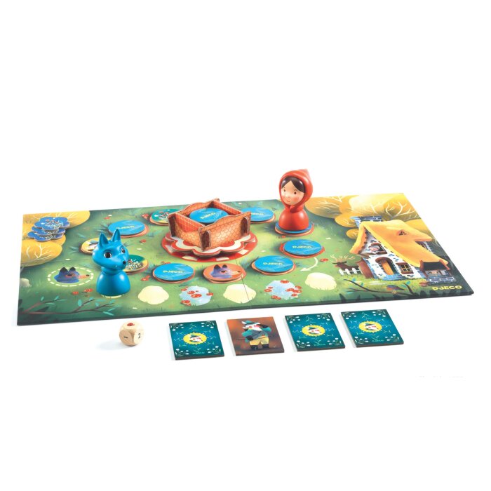 Cilj je pomoći Crvenkapici da ubere 5 cvjetova prije nego što vuk stigne do bake, uz suradnju i timski rad. Ova igra namijenjena je djeci od 5 godina naviše, a jednostavna i intuitivna pravila omogućuju brze i zabavne runde. Slatke figurice lako se pomiču po ploči, a tema poznate bajke pruža napetost i uzbuđenje tijekom cijele igre. Igra je izrađena od FSC® certificiranog papira i kartona, što je čini sigurnom i ekološki prihvatljivom za cijelu obitelj.