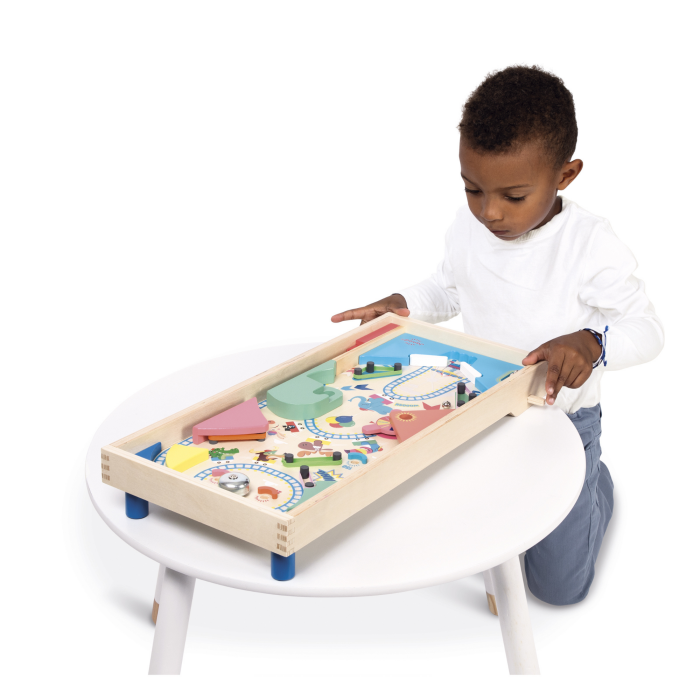 Ova stolna fliper igra idealna je za djecu od 5 godina naviše, koja kroz igru razvijaju koordinaciju, koncentraciju i osjećaj za bodove. S temom zabavnog parka, fliper dolazi s 3 metalne kuglice, zabavnom stazom u obliku rolerkostera, 4 gumene elastične opruge za odbijanje kuglica, kotačićem za dodatne bodove i zvonom za slavlje!