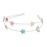 Ovaj rajf savršen je za djecu od 3 do 10 godina i idealan je za brze, slatke frizure za svakodnevne igre ili posebne prilike poput rođendana i zabava. Rajf je obložen trakom i ukrašen sa 6 mekanih zvjezdica i 2 šarene duge, izrađene od prekrasnih metalik i glitter tkanina, stvarajući efekt blistave bajkovite kose.