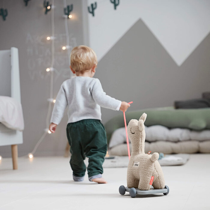 Preslatka lama na kotačima s mekim silikonskim oblogama nježna je prema podu, a zahvaljujući magnetnim nogama sigurno stoji na kolicima. Kada dođe vrijeme za odmor, Lalee se lako odvaja i pretvara u mekanog prijatelja za maženje. Izrađena od pliša, idealna je za igru i utjehu u svakom trenutku.