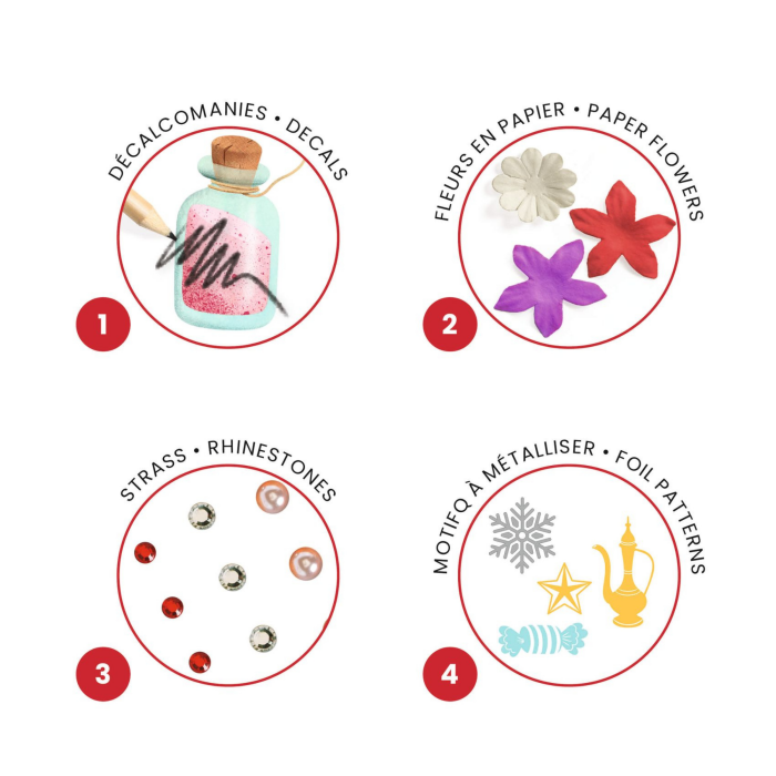 Set uključuje 4 slike koje dočaravaju ključne scene baleta: Badnju večer, Valcer Snježnih pahulja, Plesove svijeta i Ples Šećerne vile. Svaka ilustracija objedinjuje sve četiri kreativne tehnike, što čini rezultat još impresivnijim i zabavu višestruko bogatijom.