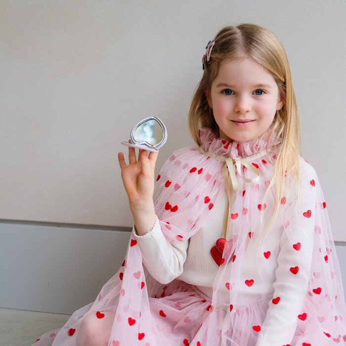 Ovo kompaktno ogledalo, promjera približno 7 cm, savršen je dodatak za male princeze koje vole preslatke detalje u svakoj torbici ili dječjem setu za igru.