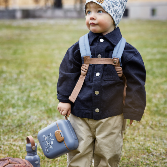 Ova posuda ima tri odvojena pretinca koji omogućavaju da drže različite namirnice svježima i odvojeno, dok poklopac s food-grade silikonskim prstenom osigurava potpunu hermetičnost i dulju svježinu hrane. U kompletu dolazi i mala vilica koja je uvijek pri ruci. Posuda je dimenzijama prilagođena Elodie BackPack MINI ruksaku, a izrađena od materijala koji su potpuno bez štetnih tvari, uključujući BPA i ftalate. Sve dijelove možete prati u perilici posuđa ili koristiti u mikrovalnoj pećnici. Idealna je za djecu od 3 godine naviše i čini svaku užinu jednostavnom i urednom.